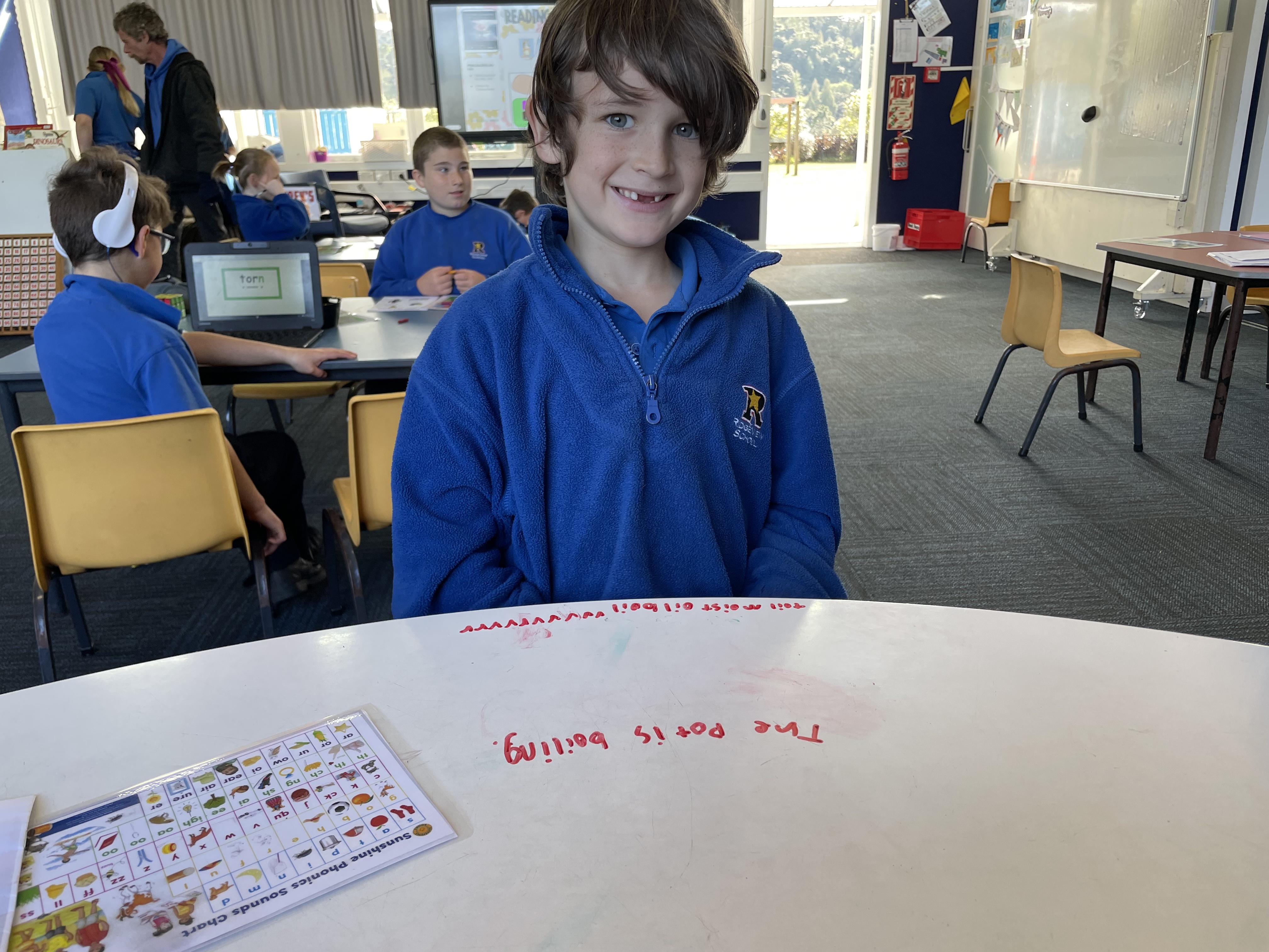 Structured literacy is taught everyday for 45minutes intensively and then integrated within other learner areas. We currently use the Sunshine Scope and Sequence as the basis for our Structured Literacy. This is a phonic based way of learning to recognise letter-sounds and then putting the sounds together to form words. The children learn the sounds in a prescribed order and once they have a minimum number of sounds under their belt, they apply their learning to specially written books.