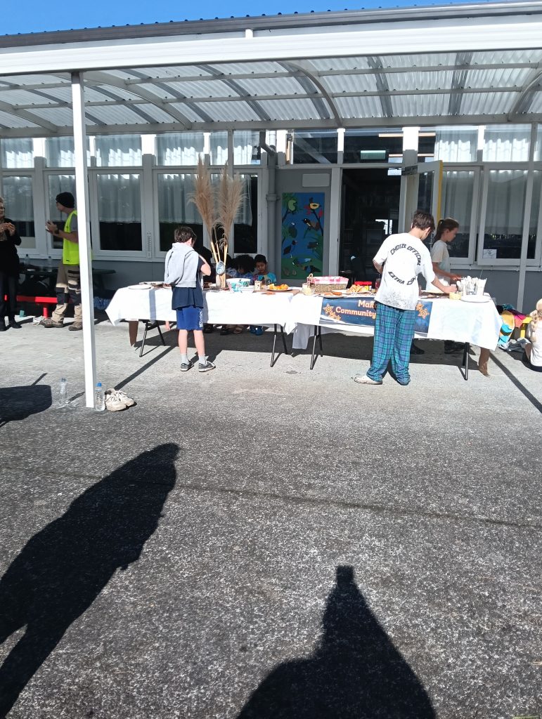 Each year for Matariki we have a Matariki Breakfast where our whole school community is invited and the school provides a breakfast for our staff, students their whanau and also the local community. This year we also had Oke Charity trust join us to create a beautiful sustainable sensory garden and the whole community came together to run a working bee and get our grounds up to date.
